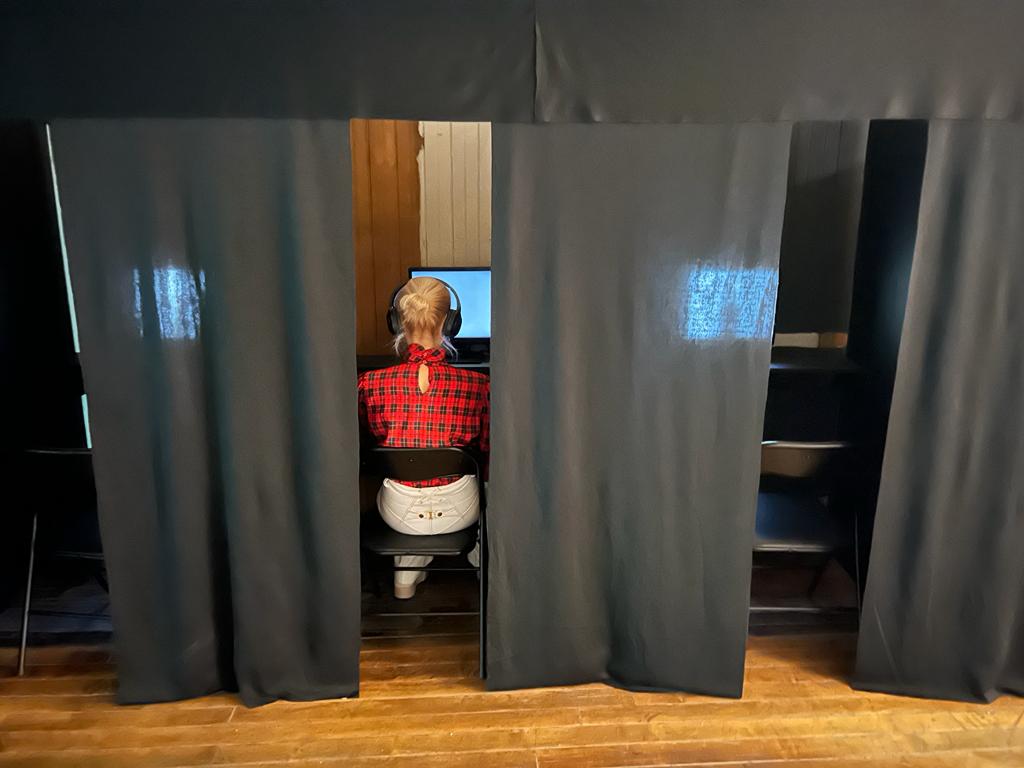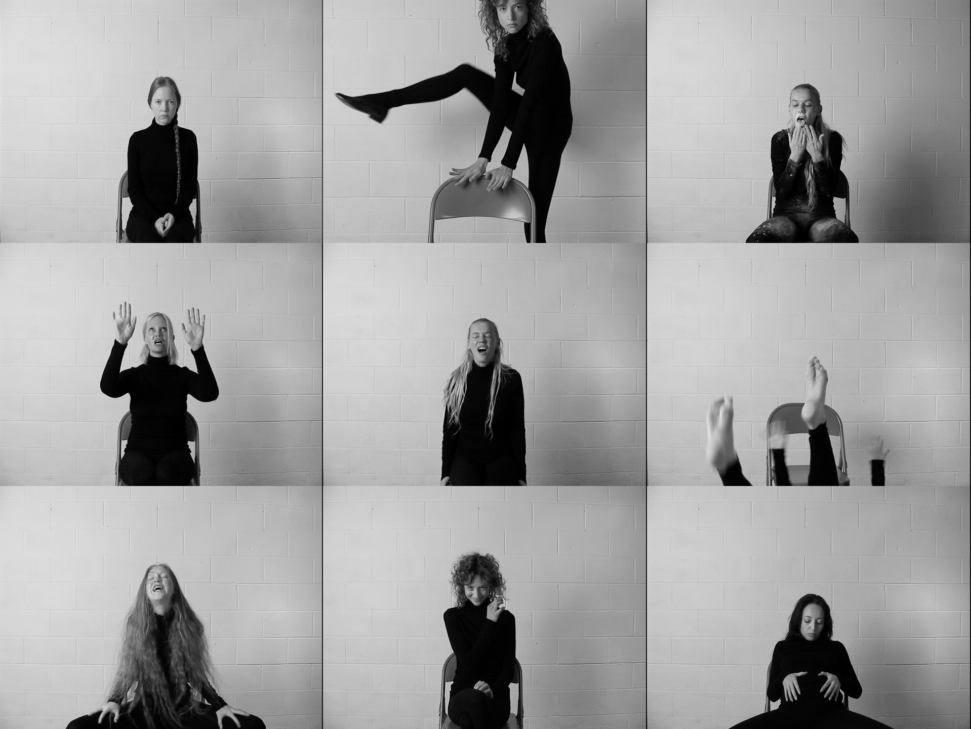 white videos (Testimonies I-V) each presenting an individual woman describing her mysterious