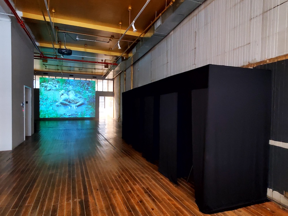Monotropa Terrain pairs a large, projected, almost otherworldly, Super8 film, with five black and