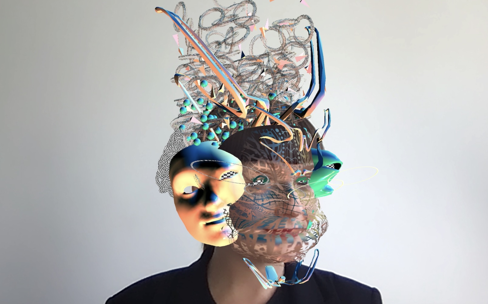 In her multi-layered face filters, Huntrezz Janos weaves an augmented reality mythology of the self. Drawing